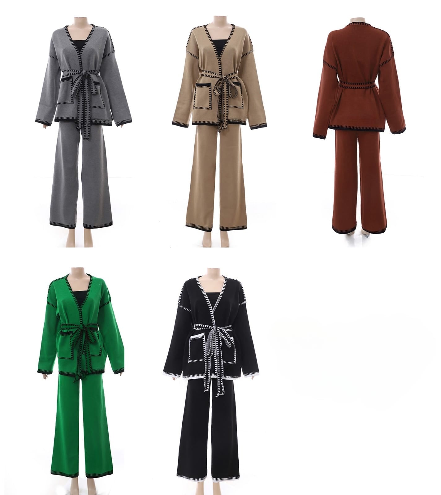 This expert-designed two-piece set features an open jersey top paired with flare three-quarter pants, complete with a convenient front pocket. The included belt accentuates the waist, offering a tailored silhouette while maintaining comfort and style. Ideal for versatile wear, this ensemble balances modern flair with practical details.