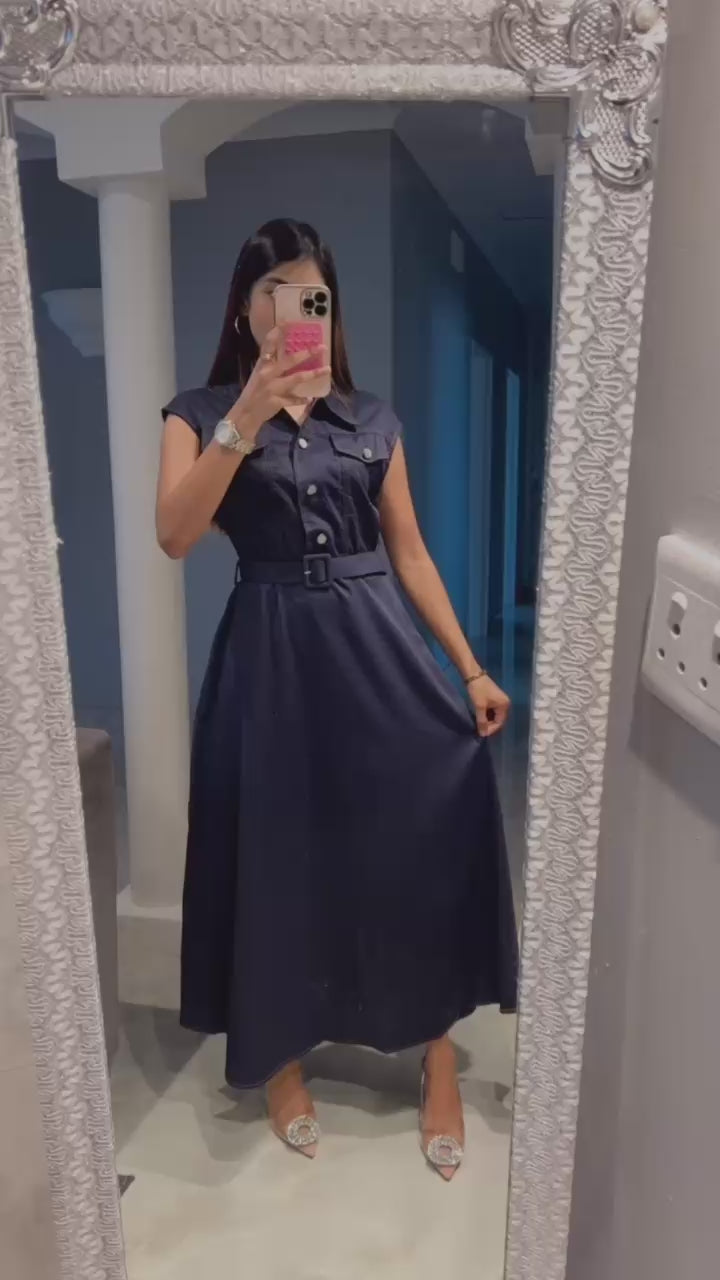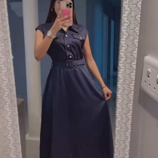 This denim button dress with belt features a flattering flare silhouette and convenient short sleeves, blending timeless style with comfortable wear. The belted waist accentuates your figure, while the classic button front adds versatile detailing. Ideal for casual outings or smart-casual occasions, this dress combines durability and effortless fashion with quality denim fabric.