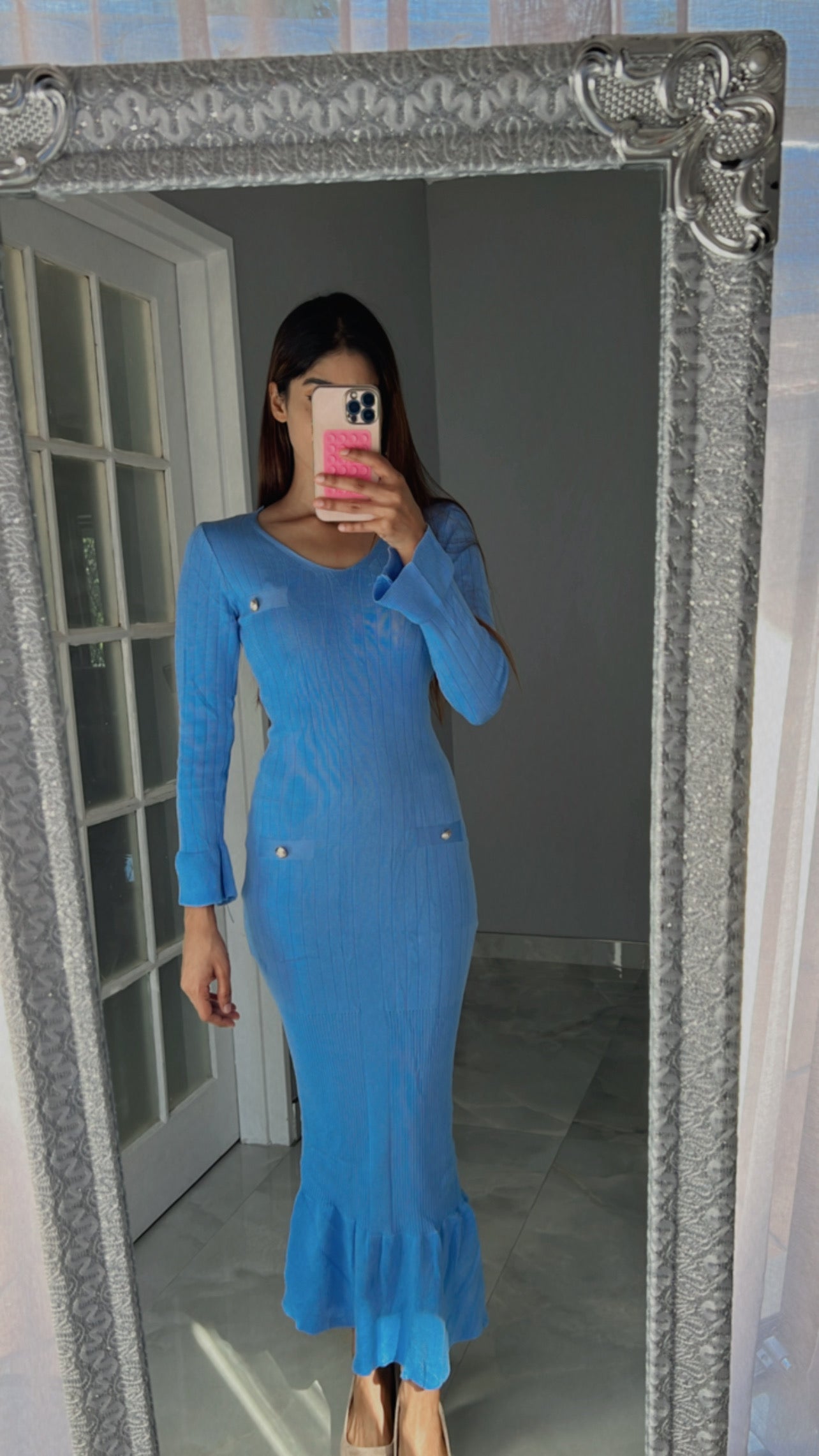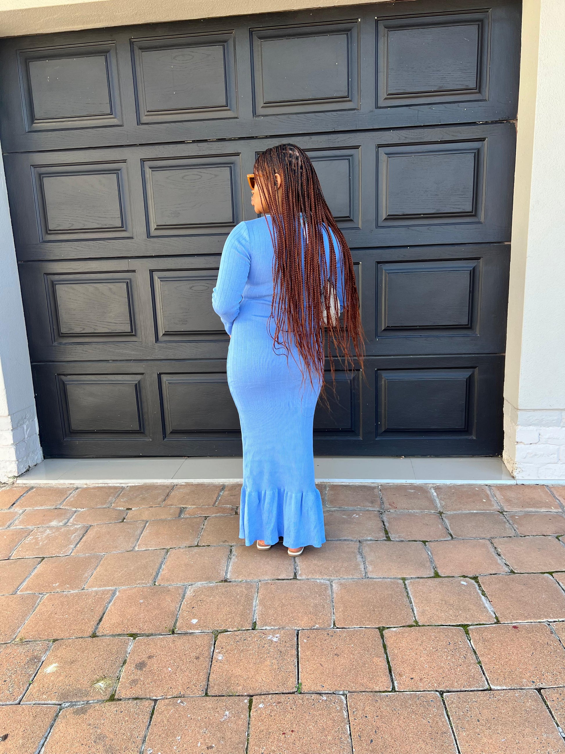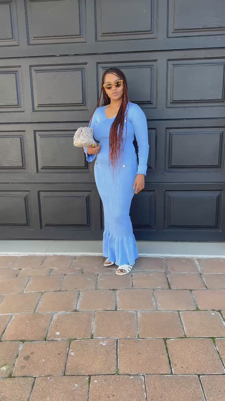knit strips button dress