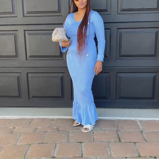 This knit strips button dress boasts a comfortable stretch fabric and long sleeves for a flattering fit. The knit button detail adds a touch of sophistication. Perfect for any occasion.