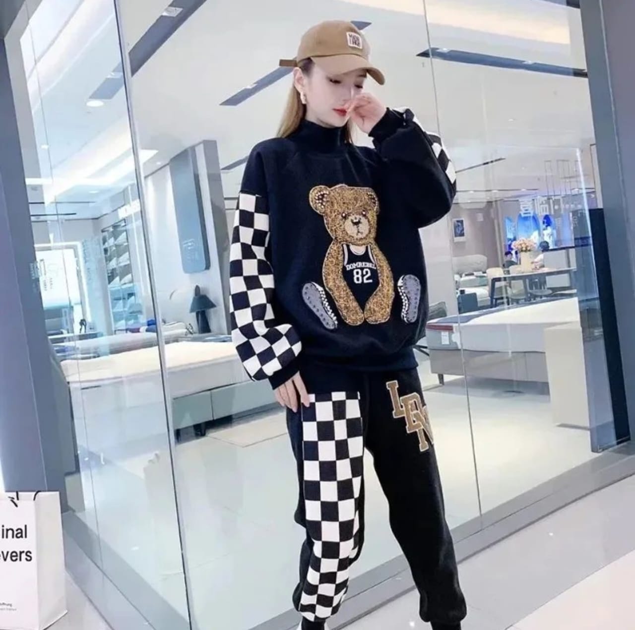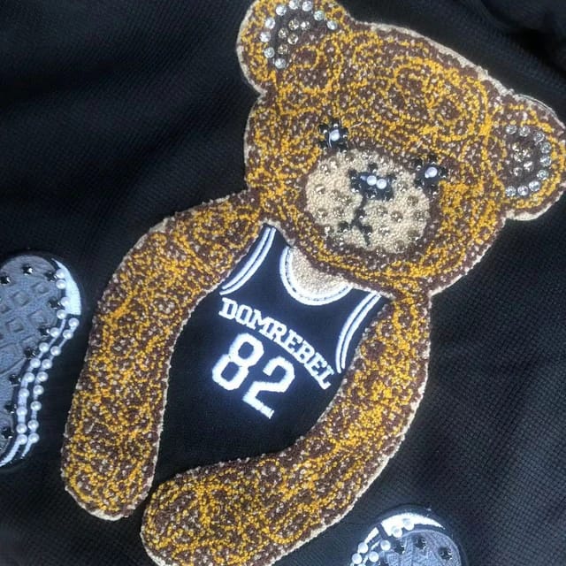 The Race Track Teddy Tracksuit features a unique, eye-catching racetrack sleeve design adorned with shimmering diamantes. The signature Teddy Bear logo adds a touch of basketball flair to this stylish statement piece.