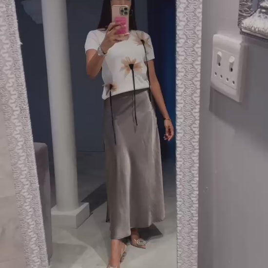 This silk full-length skirt offers a luxurious drape and smooth texture, crafted from high-quality silk for exceptional comfort and elegance. Its flowing silhouette enhances movement, making it ideal for both formal occasions and sophisticated everyday wear. The natural breathability of silk ensures all-day comfort, while the timeless design provides versatility in styling. Perfect for those seeking refined style with expert craftsmanship.